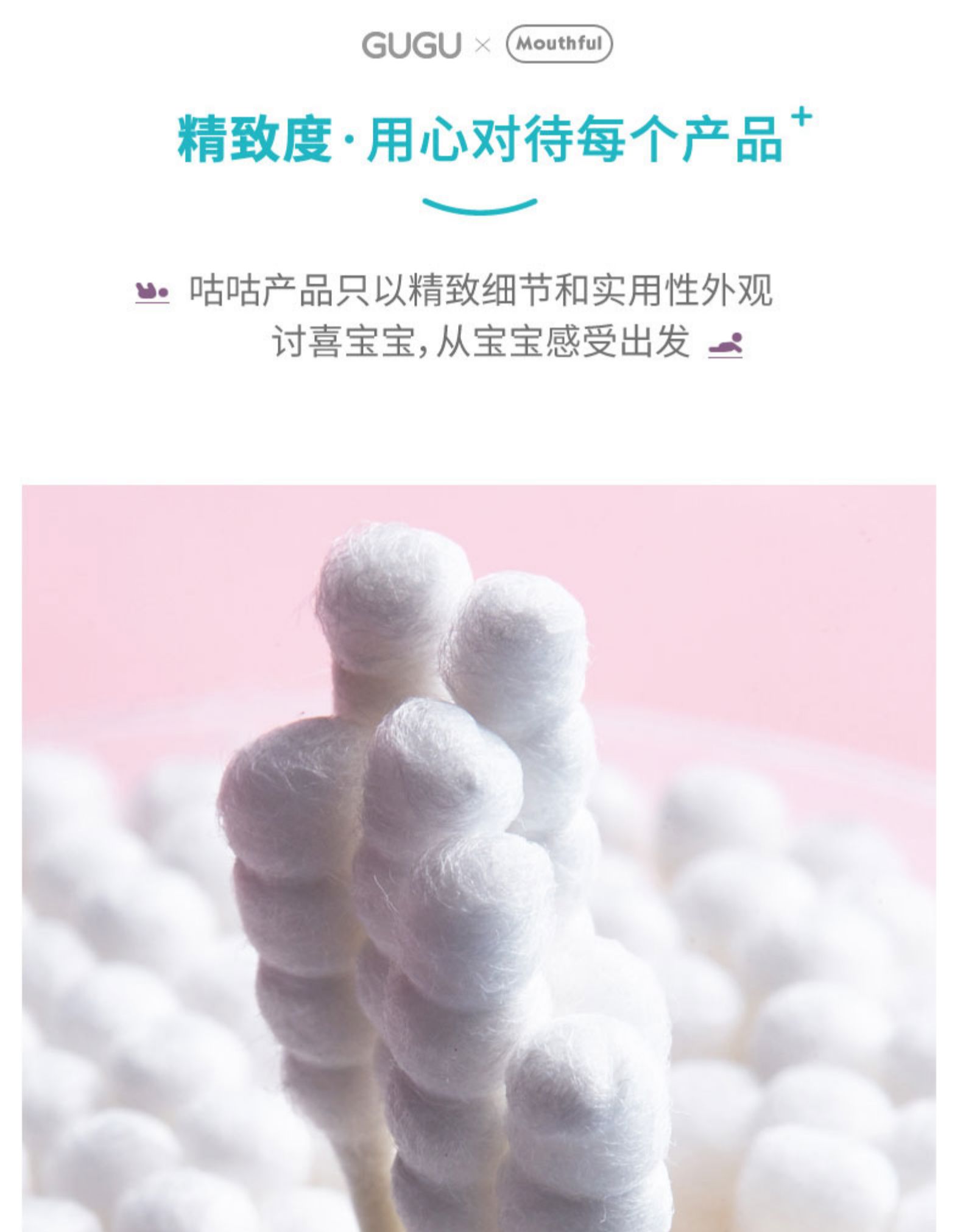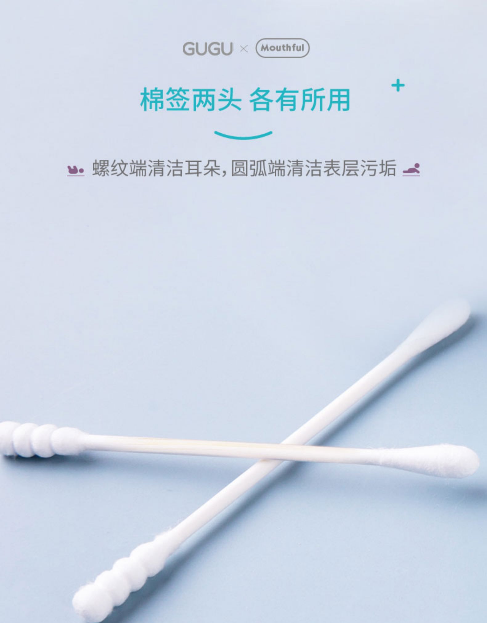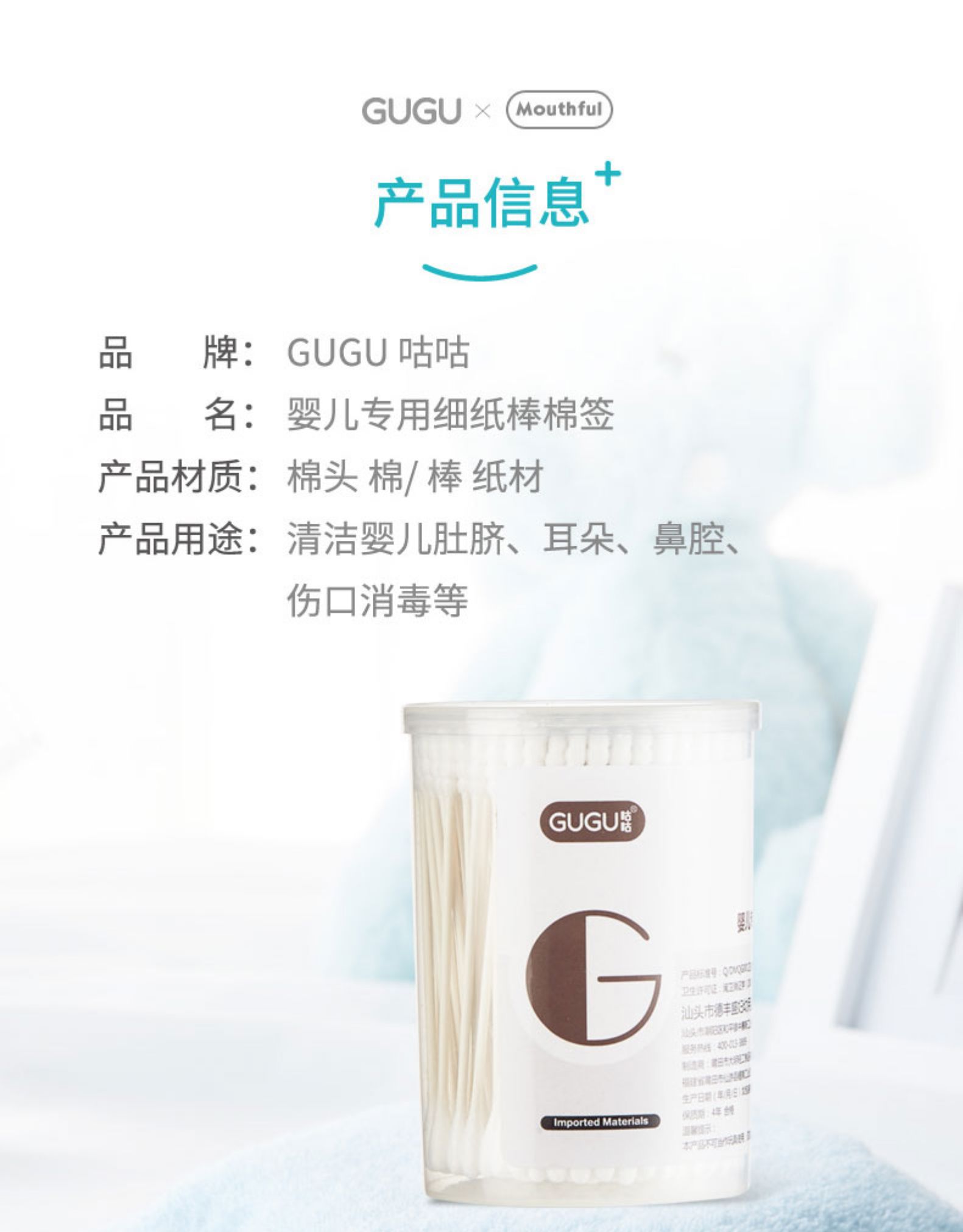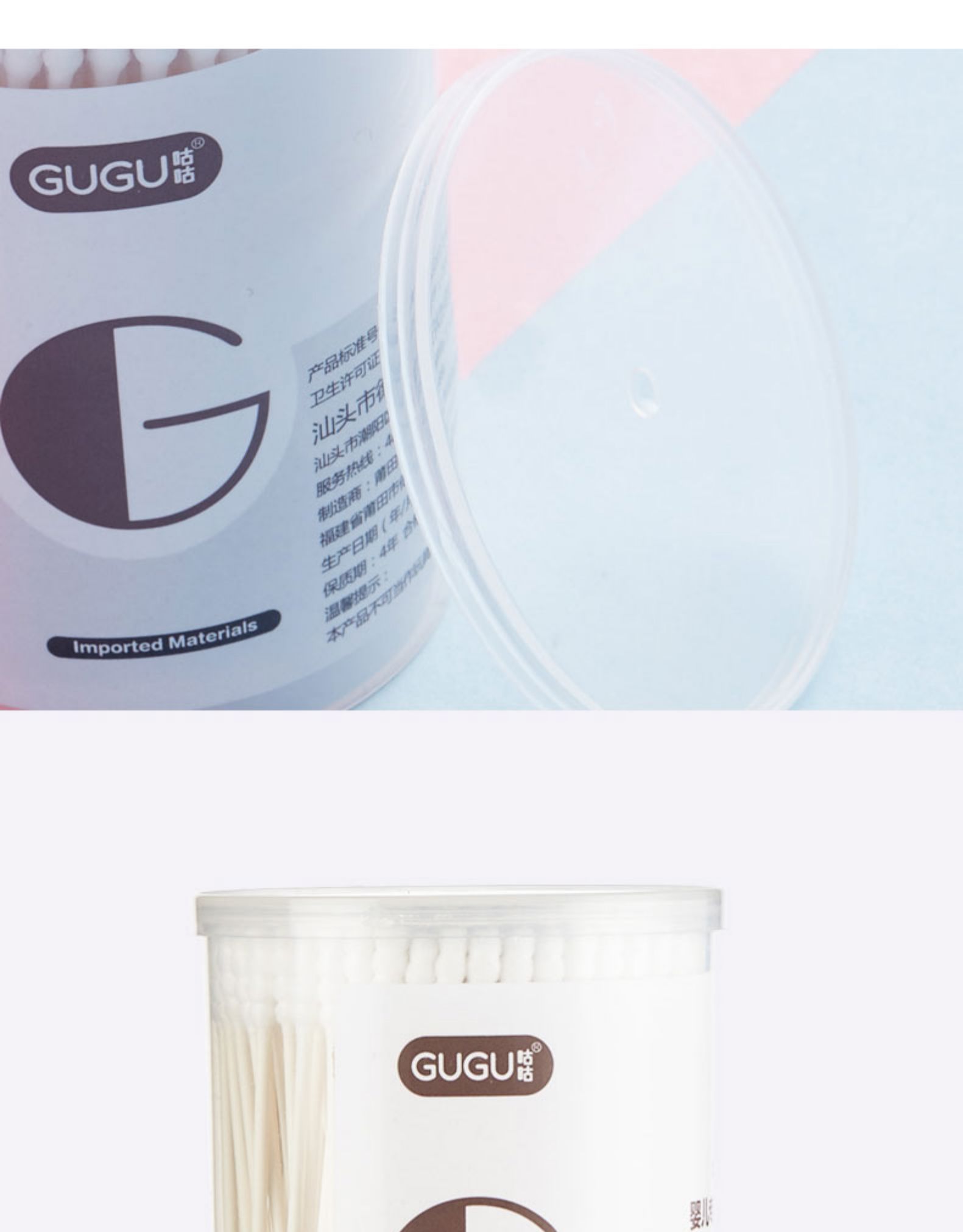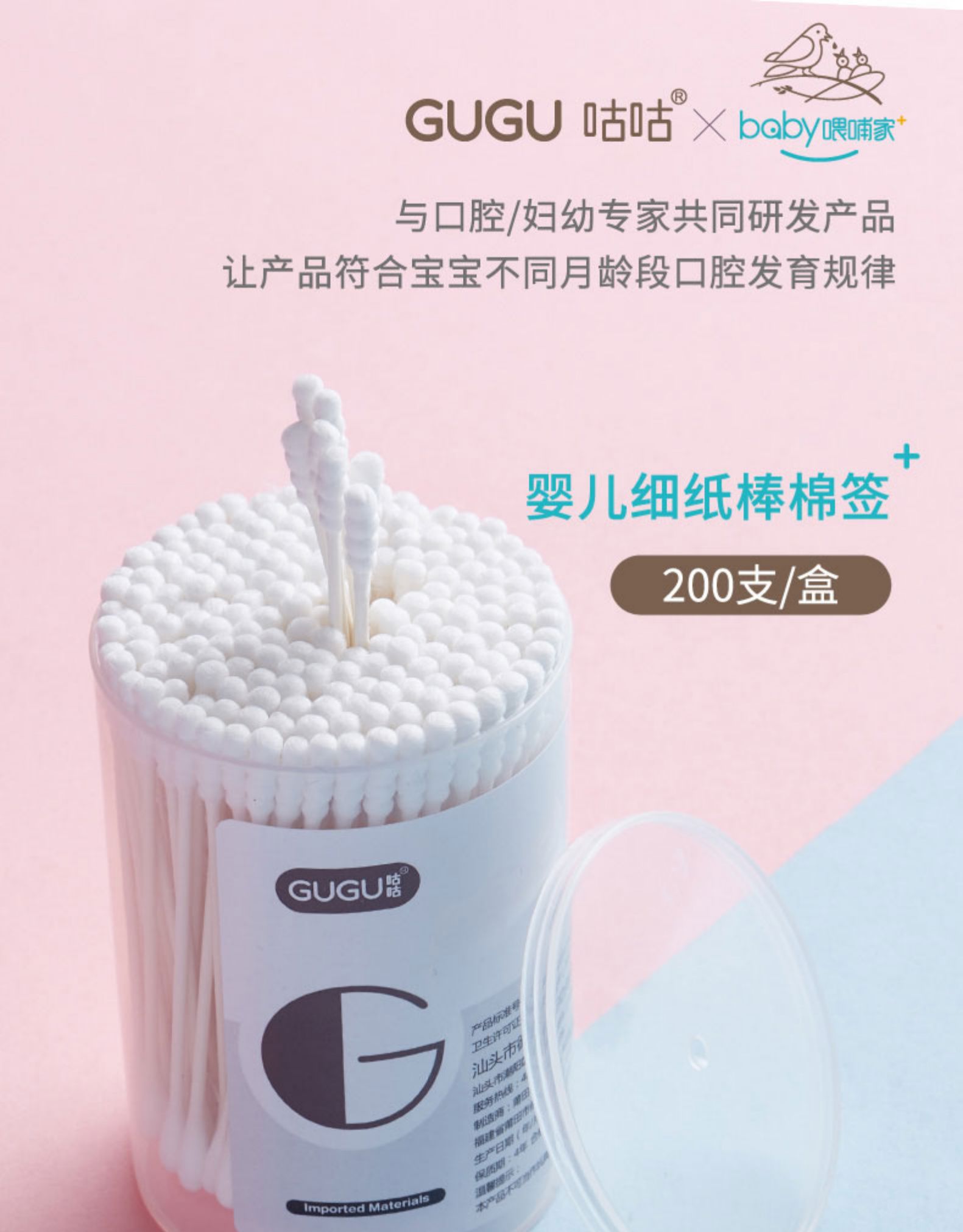品牌名稱:咕咕 型 號(hào):GI112 品名:嬰兒專用細(xì)桿紙棒棉簽(200支筒裝)